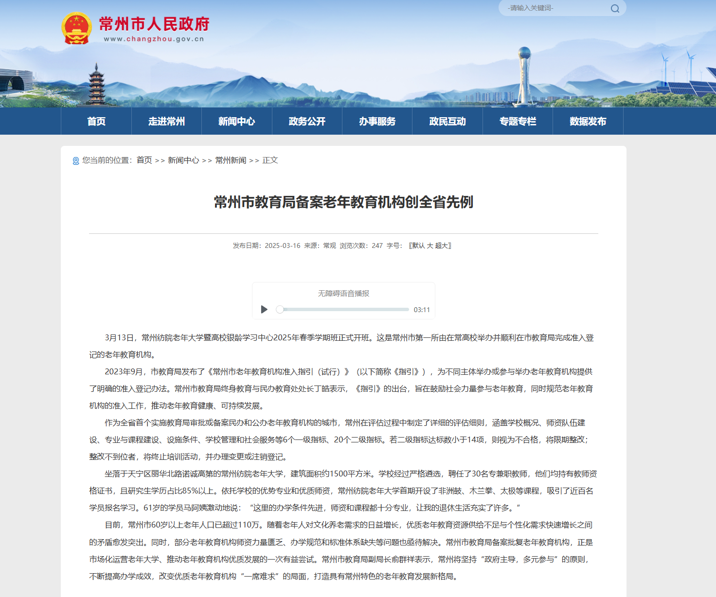 • 常州市人民政府|常州紡院老年大學(xué)暨高校銀齡學(xué)習(xí)中心2...
